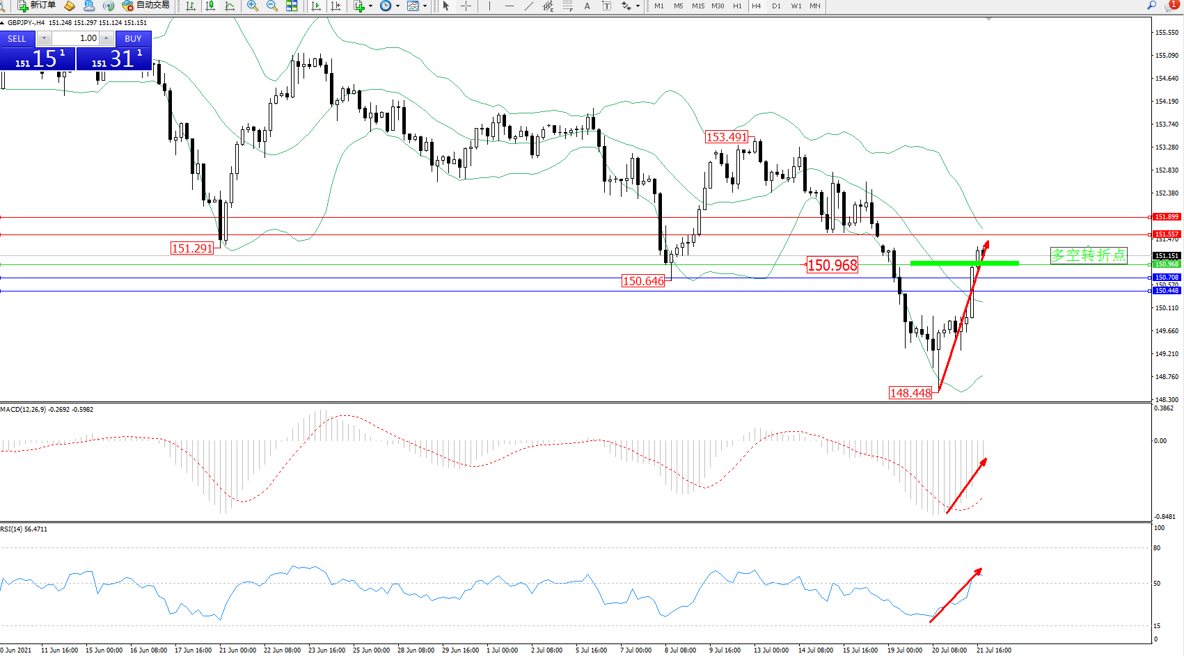 交易策略:150.968上方看涨,目标151.557、151.899