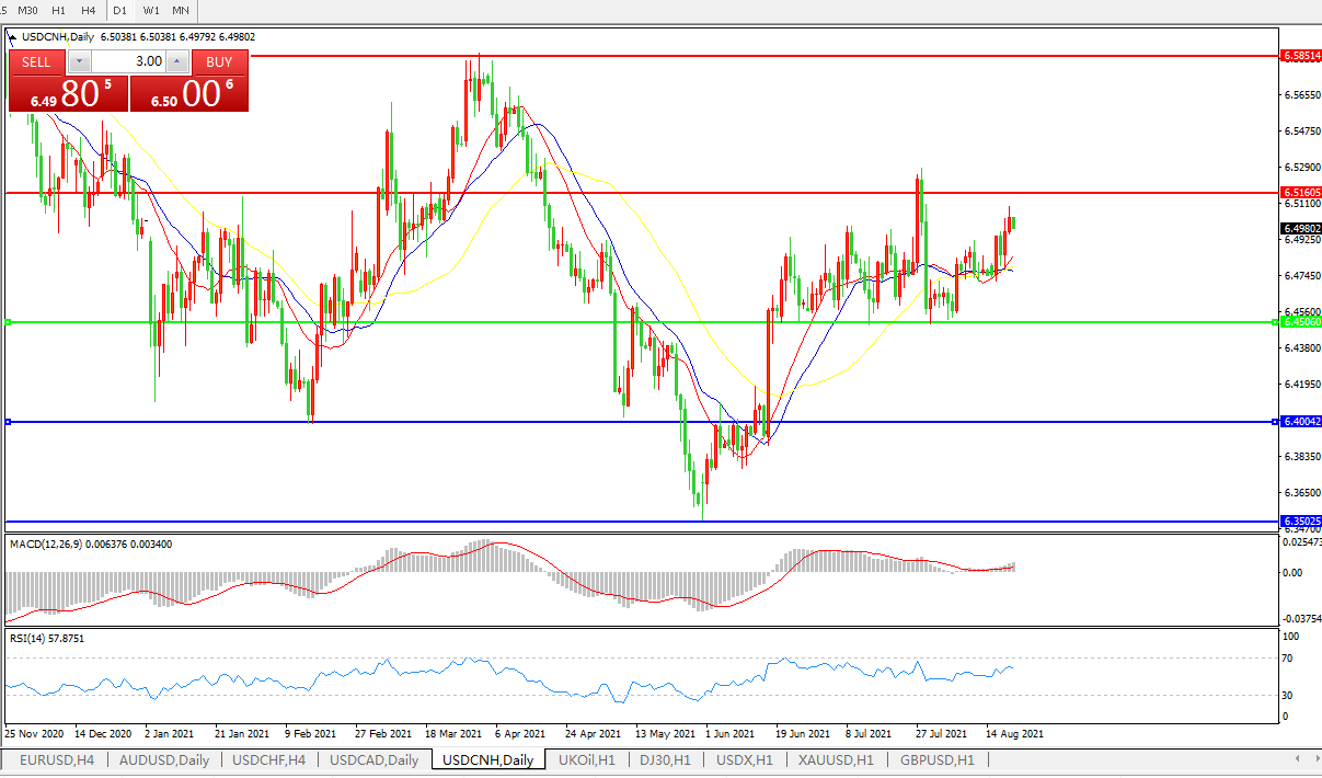 备选策略:在6.4500之下,看跌,目标价位为6.4000,然后为6.3500。