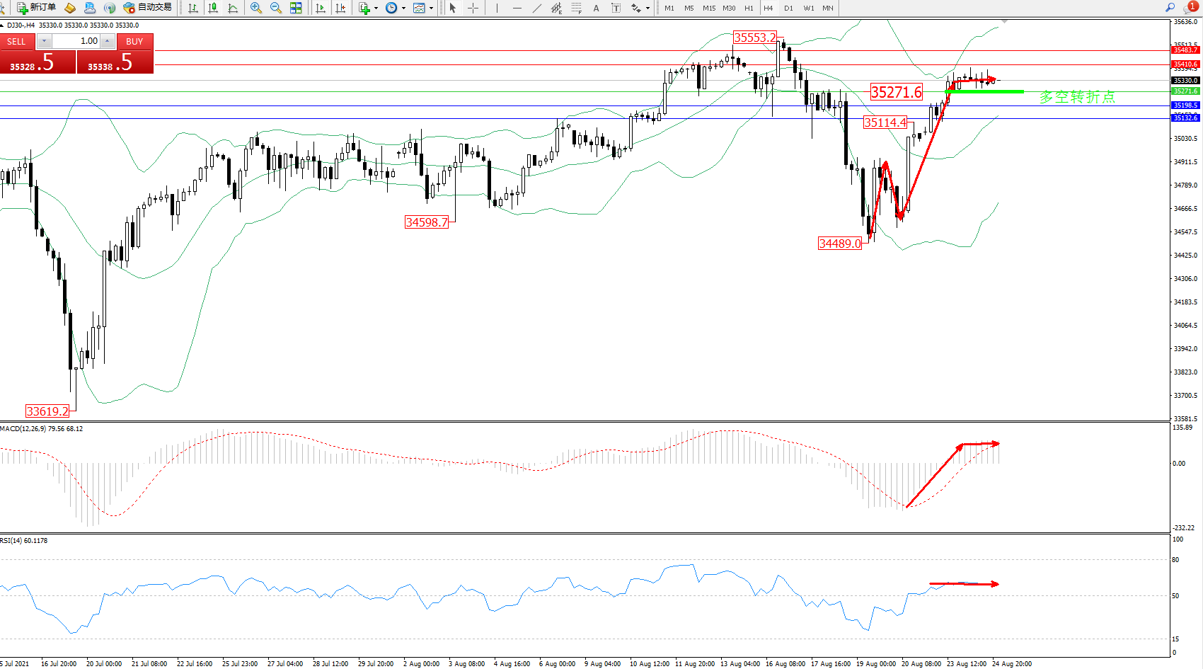 道琼斯指数8月24日(周二)收盘上涨31.67点,涨幅0.09%,报35367.38点;美股收盘,三大股指小幅收涨,美国众议院周二投票采纳一项3.5万亿美元的预算决议蓝图,此前来自白宫的压力和议长南希·佩洛西的保证团结了陷入分歧的民主党人,从而使得总统乔·拜登的核心经济议程能够继续推进;此次220-212的投票结果暂时搁置了民主党内进步派和温和派之间的分歧。佩洛西正致力于推进上述预算决议和另一项5500亿美元的两党基建法案;参议院已经以50-49的投票通过了上述预算决议。周二的众议院投票为参议院实施预算协调程序来完成立法铺平了道路。