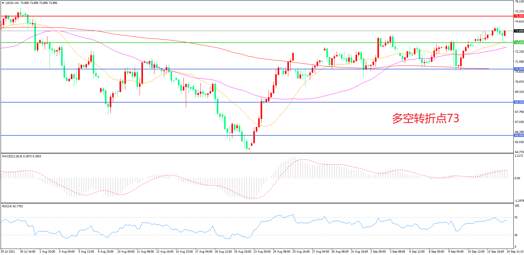 交易策略:在73.00之上看涨,目标75.00               78.00