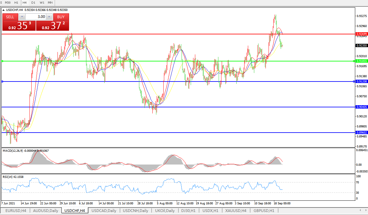 交易策略:0.9185上方看涨,目标0.9270、0.9370