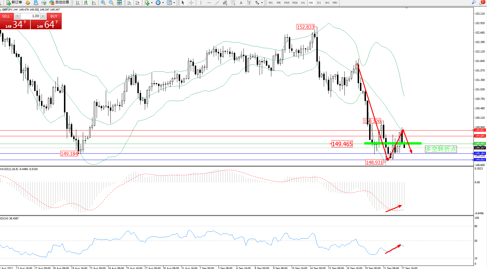 技术点评:空头动力延续布林带指标通道中下轨区间持续震荡下行,低位抵达148.931位置节点后得到短暂支撑,低位开始宽幅震荡,布林带指标呈向下移动且处于收口状态,短期有进一步下行迹象,MACD指标处于空头区域低位短暂整理上移,RSI指标处于空头区域开始整理上移后平移;