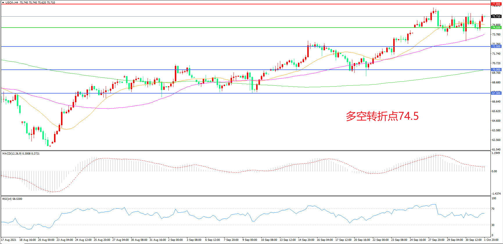 交易策略:在74.50之上看涨,目标77.00 80.00