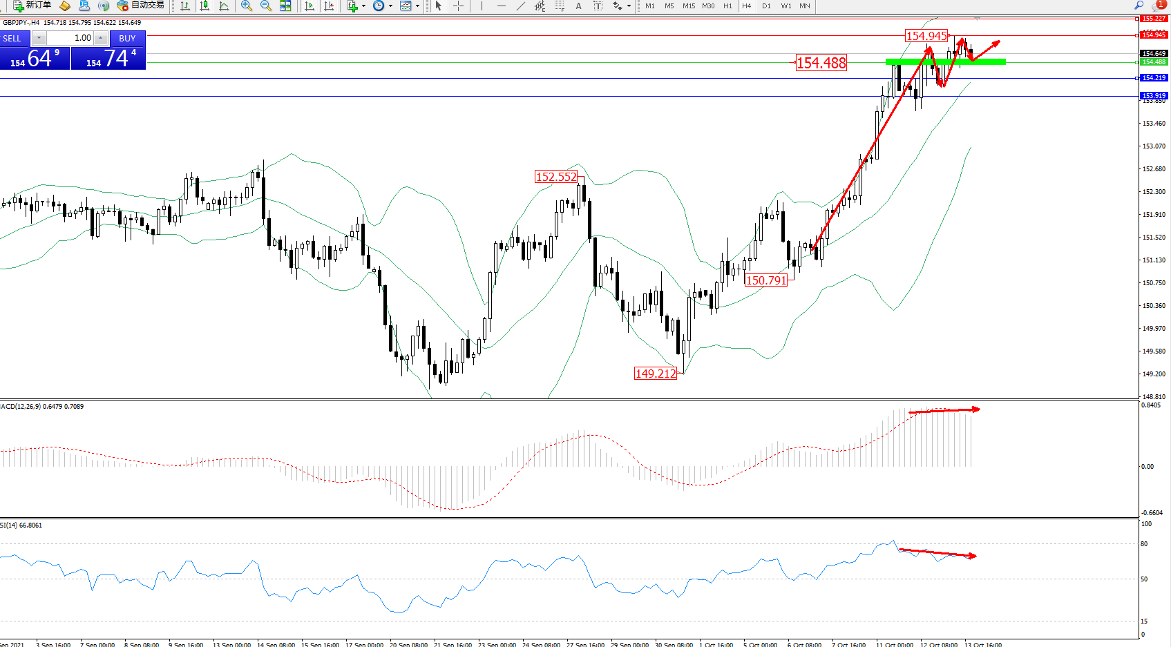 交易策略:154.488上方看涨,目标154.945、155.227