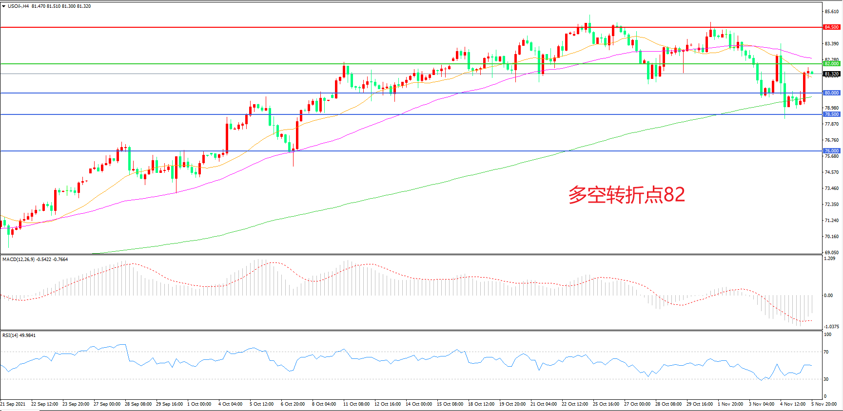 多空转折点:82.00