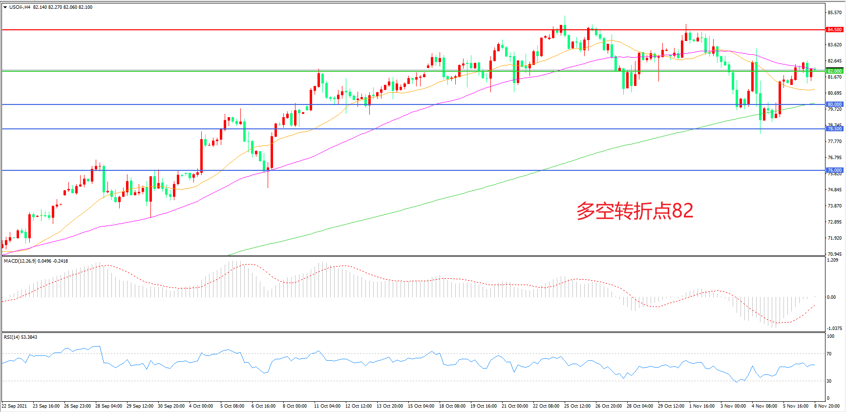 多空转折点:82.00