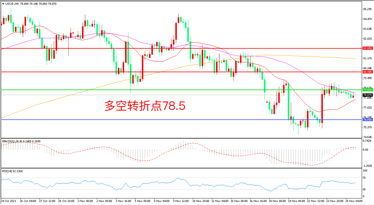 周四(11月25日),美国进入感恩节假期交投清淡,投资者都在屏息等待下周的OPEC+部长级会议以及一些主要经济体释放原油库存的进展,美国WTI原油小幅回落,收报78.01美元/桶。目前不管是伊核协议还是中美谈判,暂未看到能够支撑多头继续大幅推涨油价的事件发生,因此在四季度末一季度初,原油价格大概率仍将会按照季节性的规律演进,要提防油价突然性的大跌。