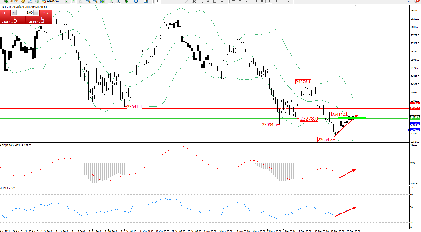 恒指HK50 ——4小时K线图显示: