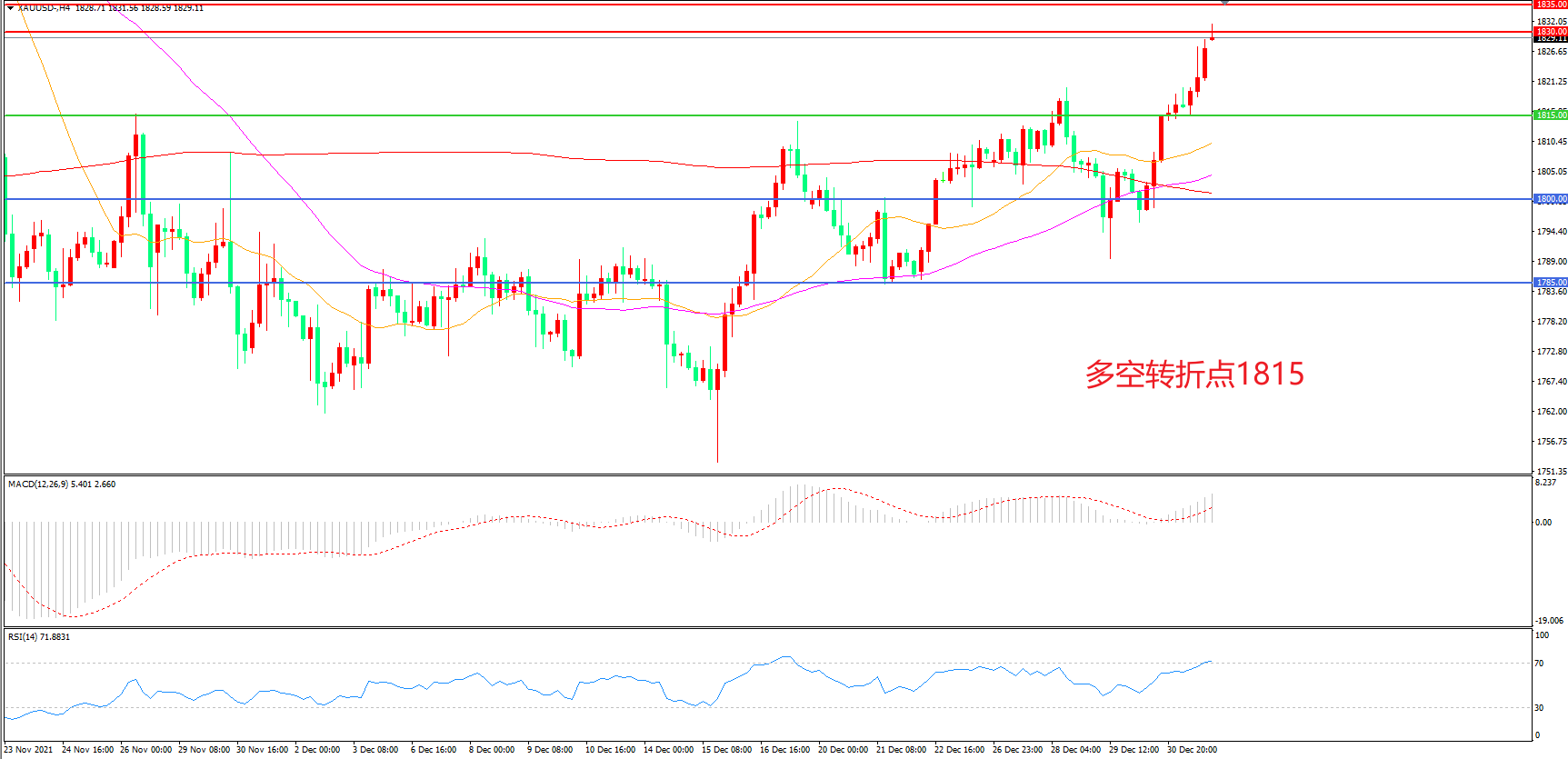 交易策略:在1815.00之上看涨,目标1830..00 1845.00