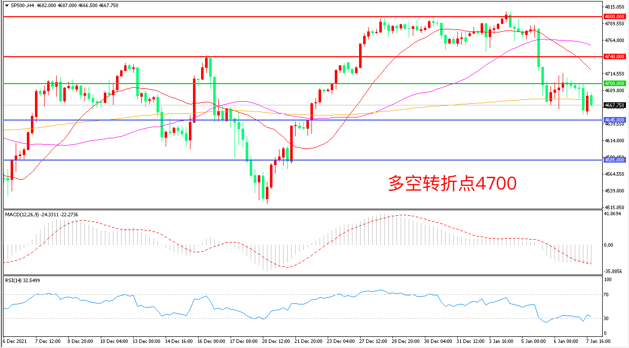 上周五(1月7日),美国非农数据意外“爆冷”没有让市场对美联储今年加快加息的预期降温,美债收益率进一步上行,标普500延续低迷走势,收报4667.75点。上周美联储公布的会议纪要释放鹰派信号引发抛盘,标普开年表现为2016年来最差,如果科技股继续承压,美股恐迎来“瀑布”行情。