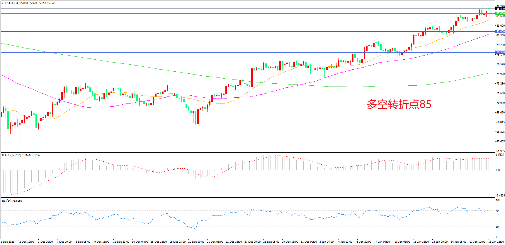 交易策略:在85.00之上看涨,目标88.00        90.00