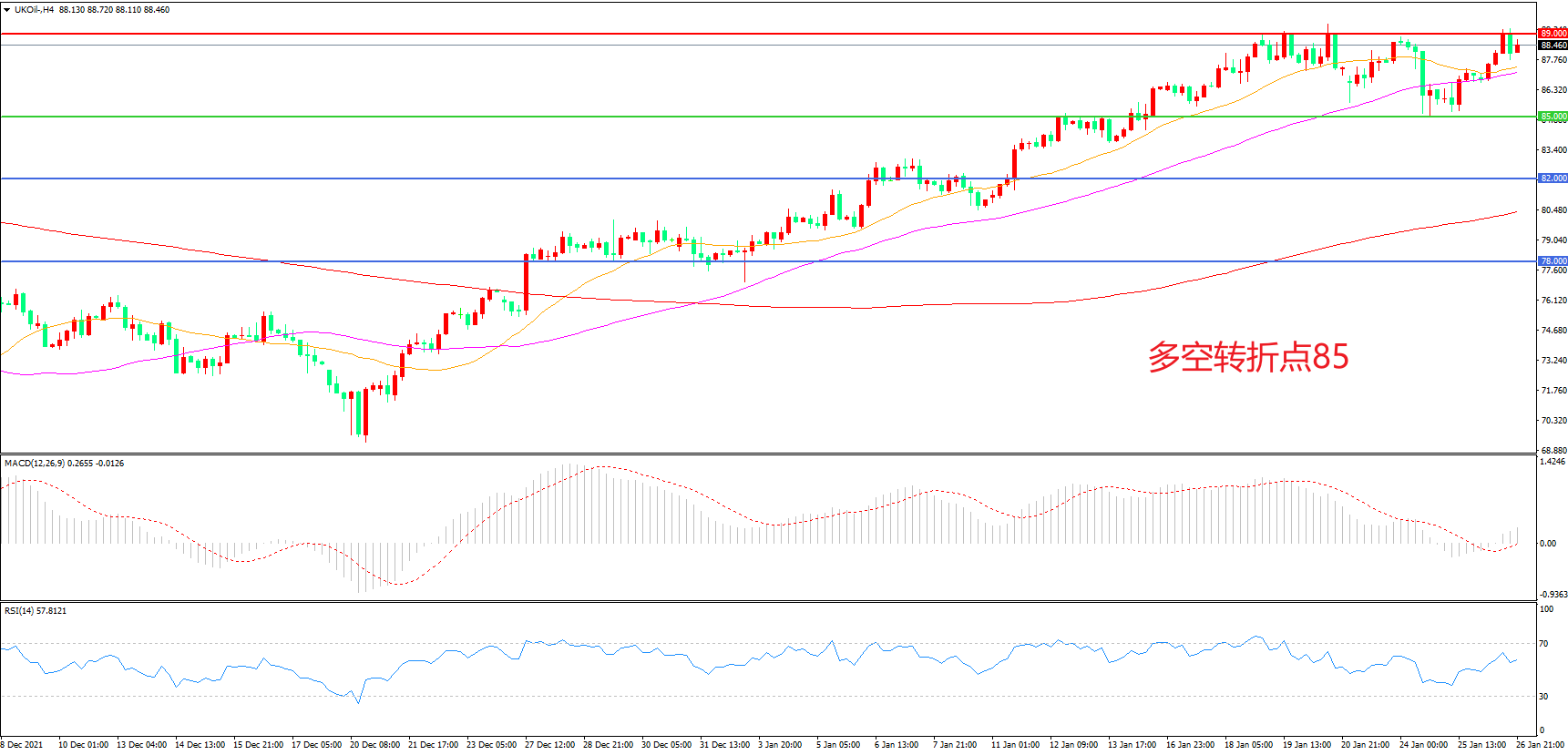 周三(1月26日),美联储释放了今年3月的下次会议就可能决定开始加息的强烈信号,但地缘政治的影响掩盖了加息的不利影响,布伦特原油延续强势表现,收报88.46美元/桶。短线来看,在地缘政治的强力推动之下,对供应的担忧盖过了利空因素影响,在原油市场出现持续的超预期供应或者累库动作之前,油价保持上行的概率较大。