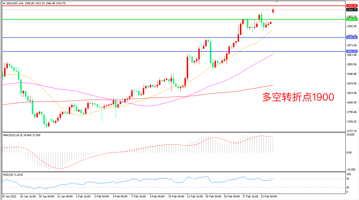 交易策略:在1900.00之上看涨,目标1915.00 1930.00