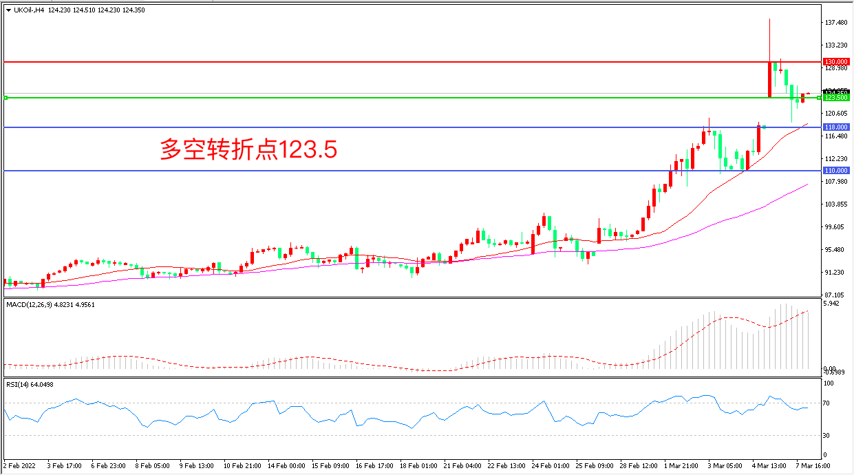 周一(3月7日),第三轮俄乌谈判无实质结果,美国考虑禁止进口俄罗斯产油令投资者仍然担心油市供应危机, 布伦特原油高开后回补缺口,收报123.35美元/桶。目前原油供应层面处在高弹性的不稳定状态下,偏紧预期是共识,油价相对易涨难跌,空前的供应紧张和市场情绪作用下,油价延续强势概率较大。