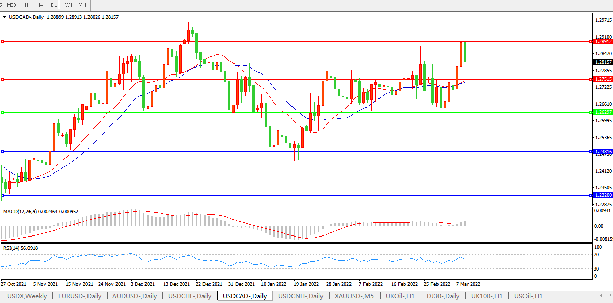 美元兑加元USDCAD 日线图: