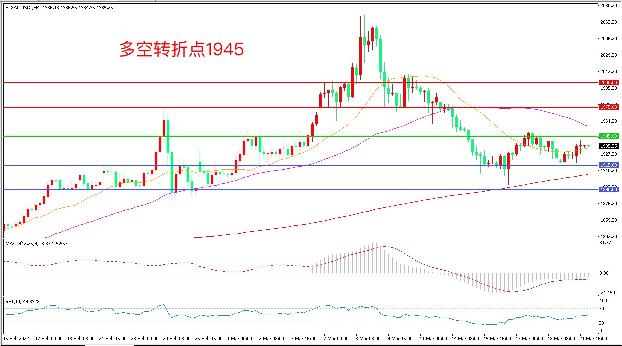 周一(3月21日),鲍威尔表示若遏制通胀需要,美联储准备“通过一次或几次会议都加息超过25个基点来更激进地行动,联储高层的鹰派表态打击了市场中的避险情绪,现货黄金延续窄幅震荡,收报1936.19美元/盎司。近期黄金的库存变化正表明,机构正在为更高的黄金交割量和更高的金价做准备,重点关注俄乌局势及联储高官的发言表现。