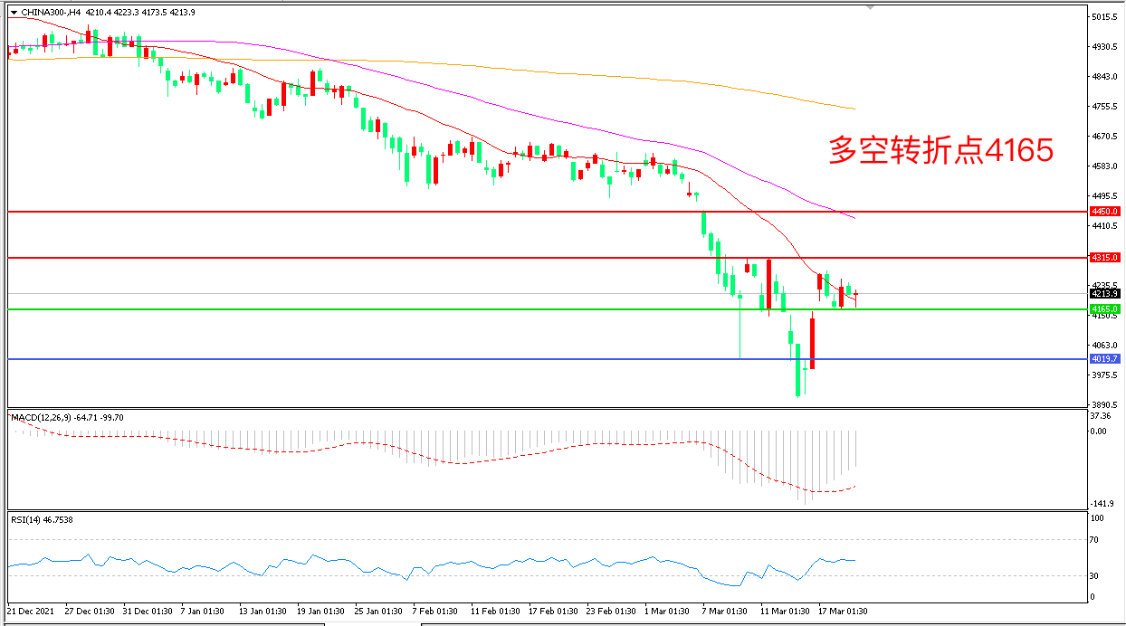 4小时图看,沪深300以4165为依托展开整理,短期走势偏强, MACD绿柱缩短,RSI指标走平,日内震荡上行概率较大。