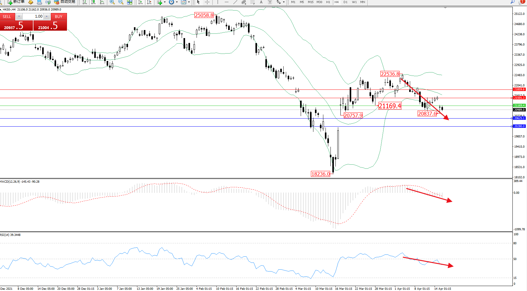香港恒生指数4月19日(周二)收盘下跌490.32点,跌幅2.28%,报21027.76点;港股节后首日大跌,恒生科技指数跌3.79%再度跌破4200关口。大型科技股重挫引领大市走低,美团跌5.93%,百度跌超5%,阿里巴巴跌超4%,网易、腾讯、快手均跌近3%;超市便利股大跌居前,南下资金逆势净流入39.57亿港元,大市成交额为1155亿港元。澳门特区政府新冠病毒感染应变协调中心19日宣布,经珠澳联防联控机制协商一致,自20日凌晨零时起,由广东省经珠澳口岸或水路入境的人士,恢复须持采样日后48小时内核酸检测阴性证明。未持有上述证明的非澳门居民可被拒绝入境,澳门居民则须立即接受检测;而从澳门离境前往广东的人士维持须出示7天内核酸检测阴性证明的要求。其他出入境防疫要求不变。