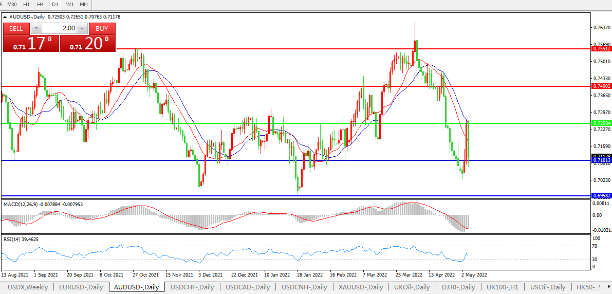 备选策略:0.7250上方看涨,目标0.7400、0.7550