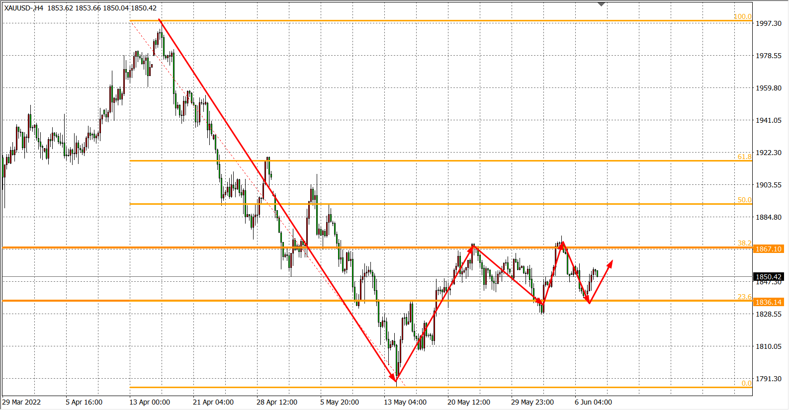 备选策略:在1850.00之上看涨,目标1858.00          1867.00