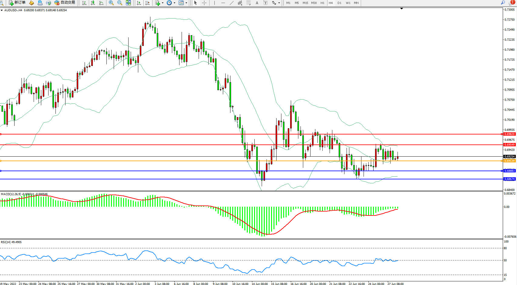 备选策略:0.69139下方看跌,目标0.68883、0.68674