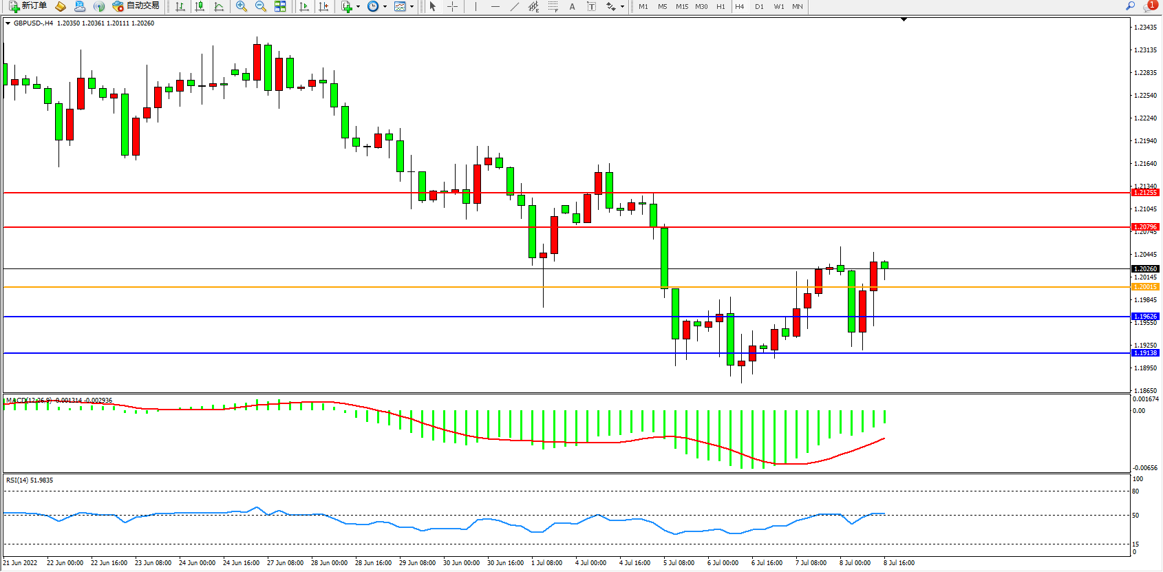 交易策略:1.20015上方看涨,目标1.20796、1.21255