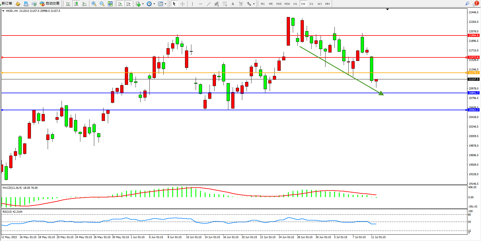 香港恒生指数7月11日(周一)收盘下跌601.58点,跌幅2.77%,报21124.2点;国内多地疫情反弹,风险市场情绪表现悲观。港股全天呈单边下跌行情,恒生科技指数跌3.86%险守4600点关口。多股被调出港股通,更有个股估值遭金下调近70%。