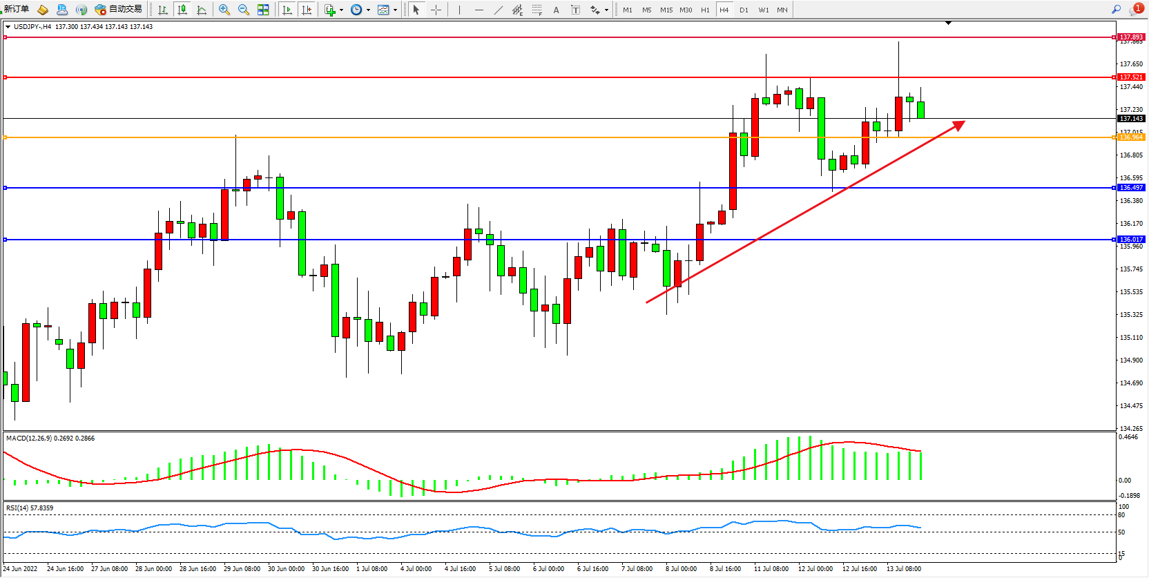 美元兑日圆维持137.143附近震荡,美元开启了飙升之路,而在全球主要经济体中,日元则遭遇历史性贬值,成为今年表现最差的主要货币。目前主导美日走势的影响因素,还是落在两国货币利差不断扩大这方面原因上。