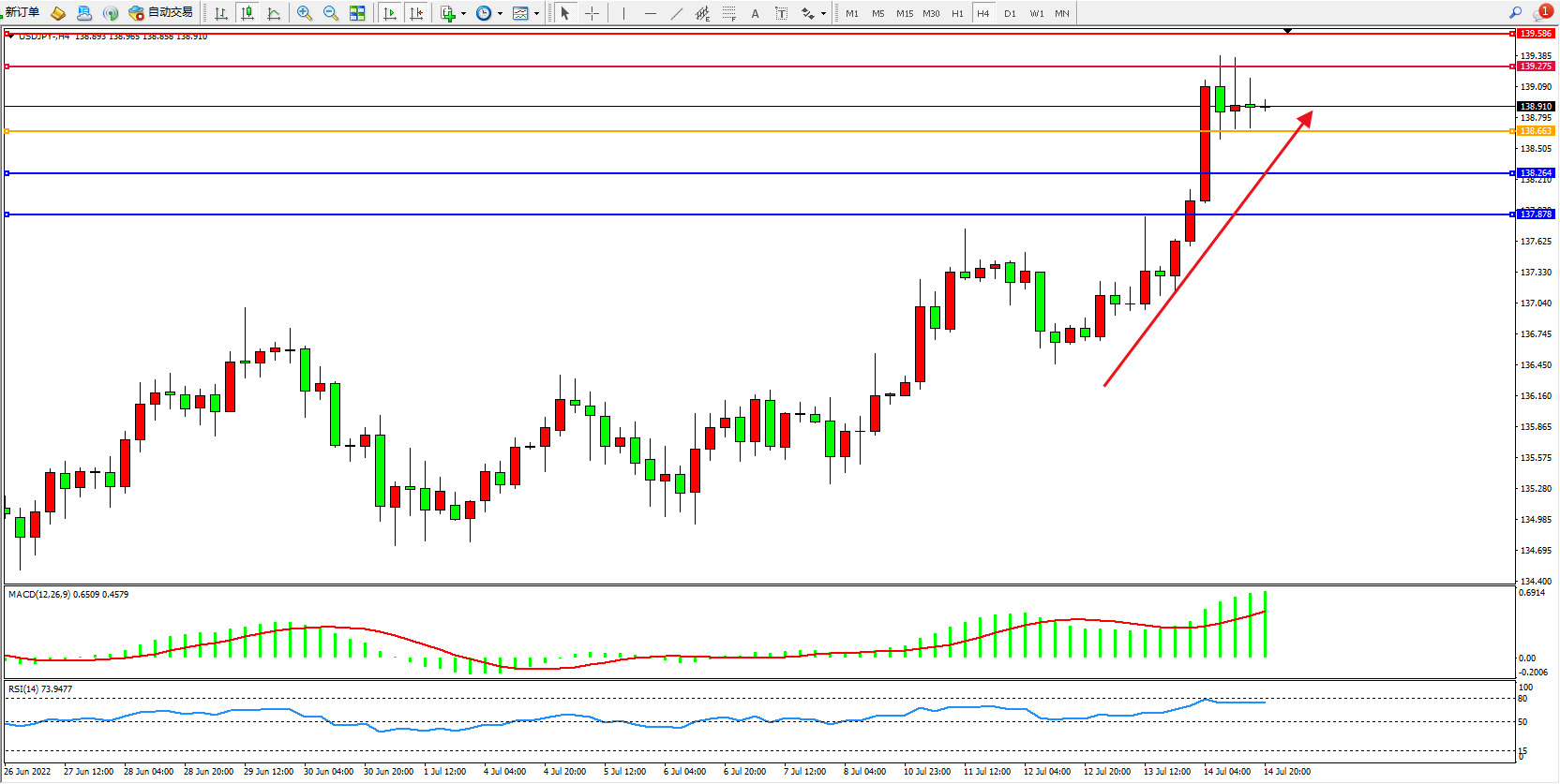 美元兑日圆维持高位139.014附近拉升,美日国债实际收益率差距收窄,或帮助抑制日元跌势,但这一动向尚未在美元兑日圆汇率上得到体现,而该利差一直是日元走软的一个重要推动因素。