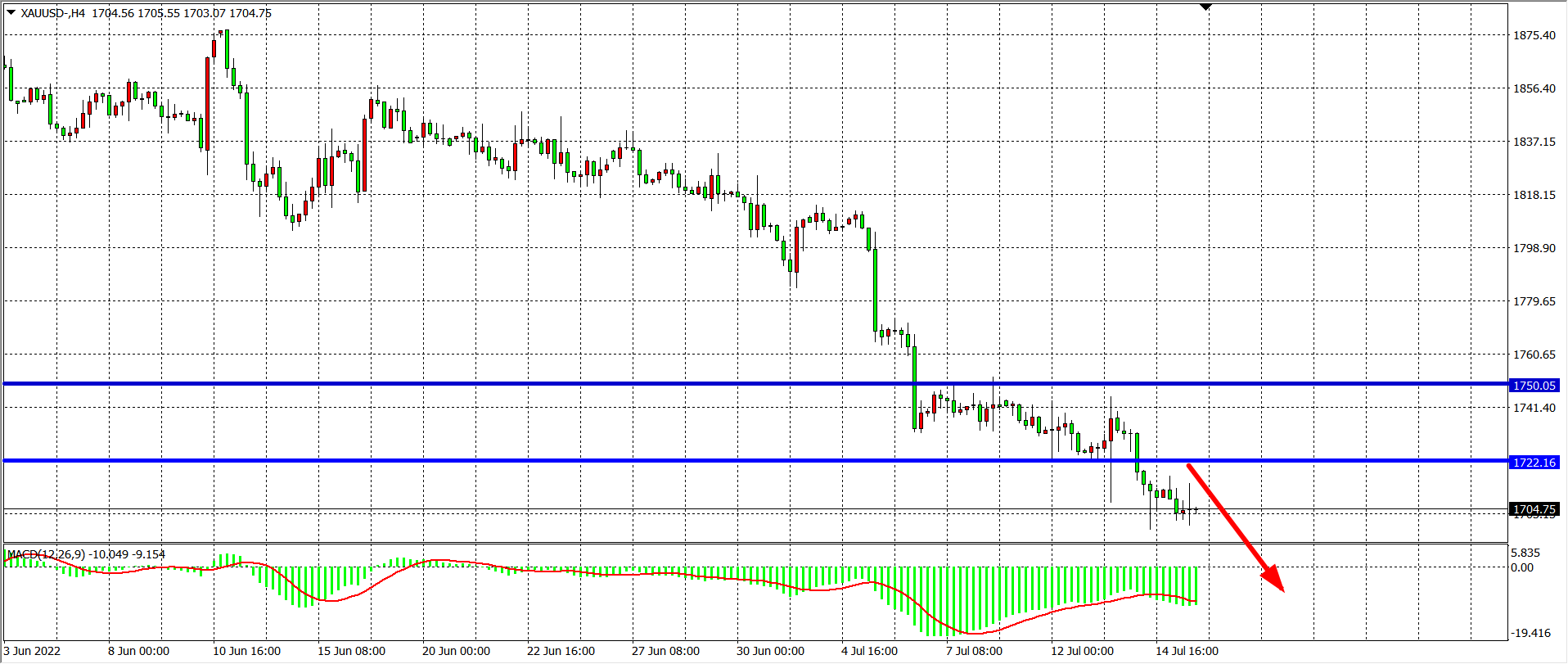 交易策略:在1722.00之下看跌,目标1690.00          1670.00