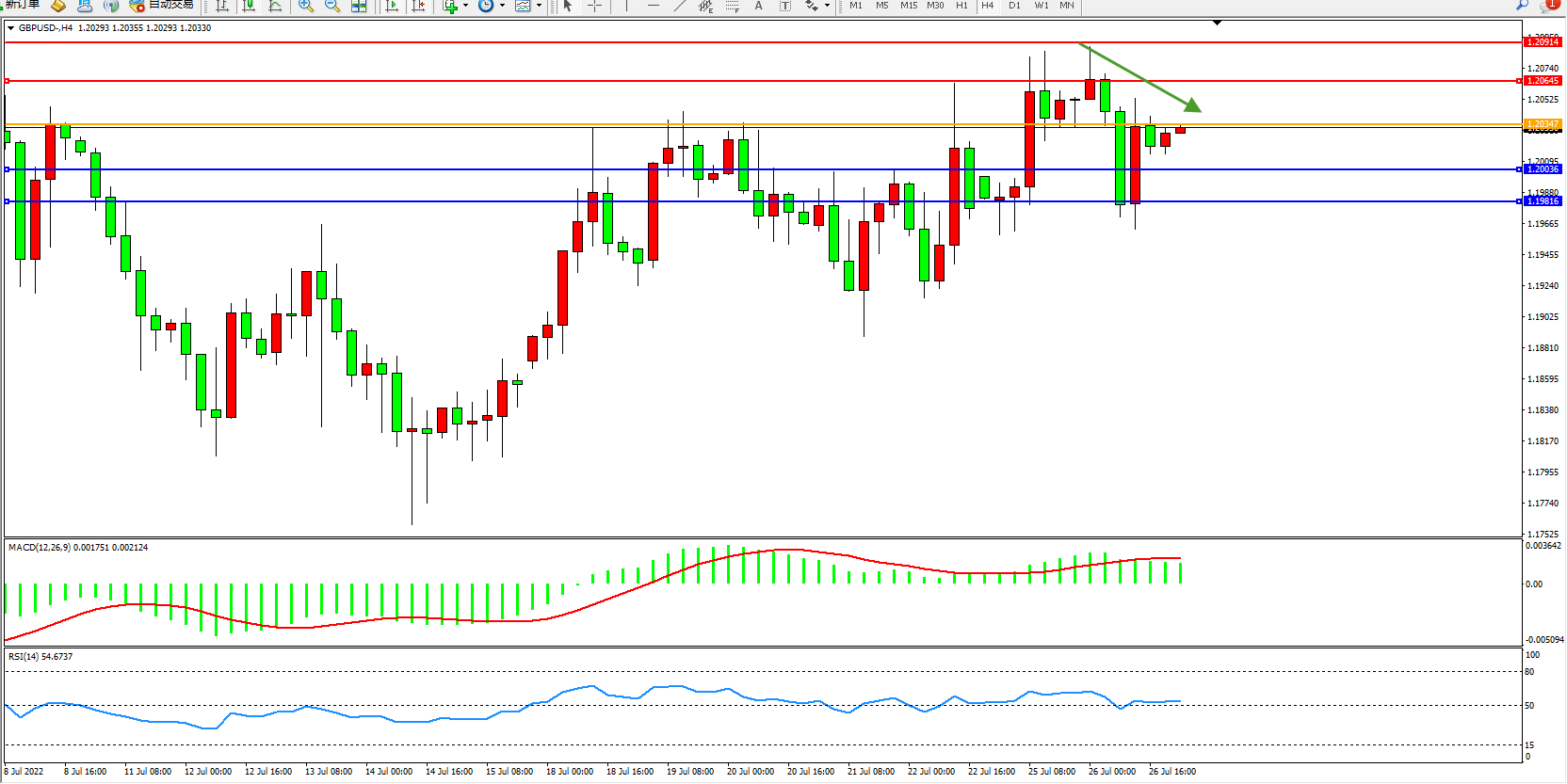 交易策略:1.20347下方看跌,目标1.20036、1.19846