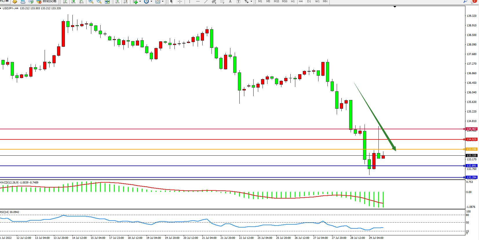 美元兑日圆维持133.335附近震荡,在美联储会议结束后,日圆连续第三天走高。加息预期削减促使对冲基金对日圆空头头寸进行回补。美日目前已较7月中旬的高点下跌逾4%。