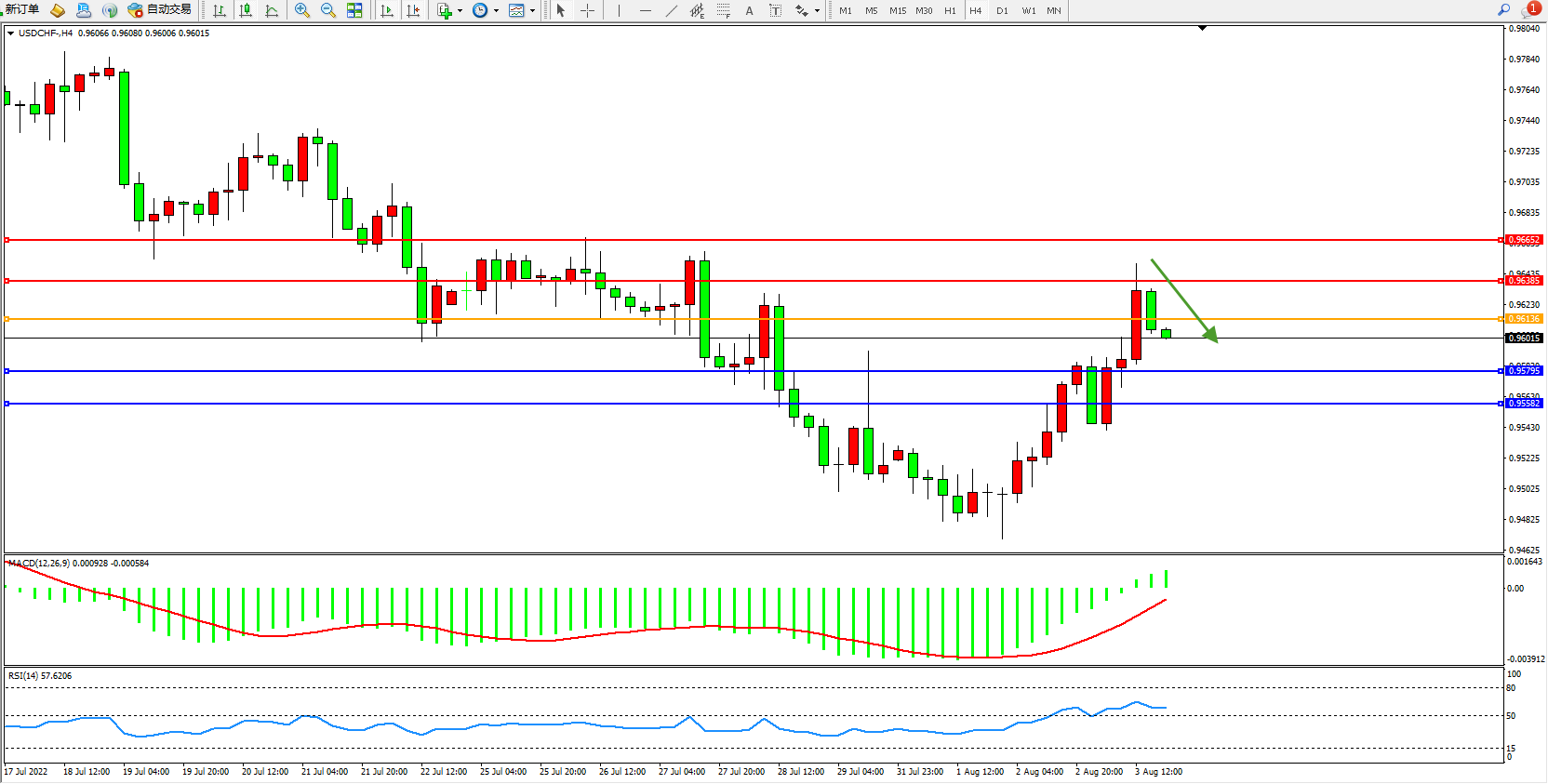 备选策略:0.96136上方看涨,目标0.96386、0.96652