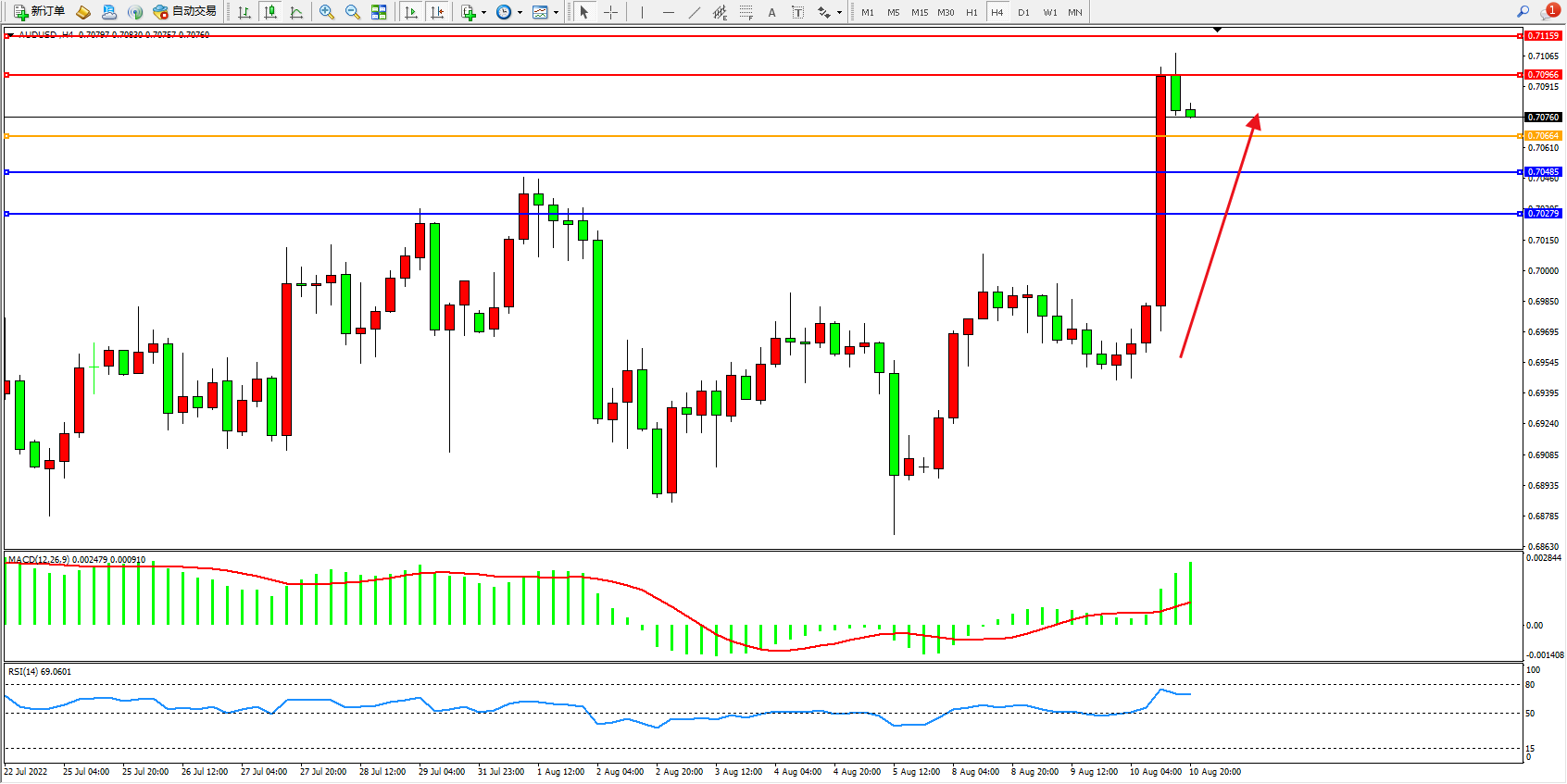 澳元兑美元维持0.70760附近震荡, 澳大利亚紧张的劳动力市场对新西兰来说是个问题,因为它很容易加剧新西兰劳动力短缺和高通胀问题。这也是新西兰联储将继续加息50个基点的另一个原因。