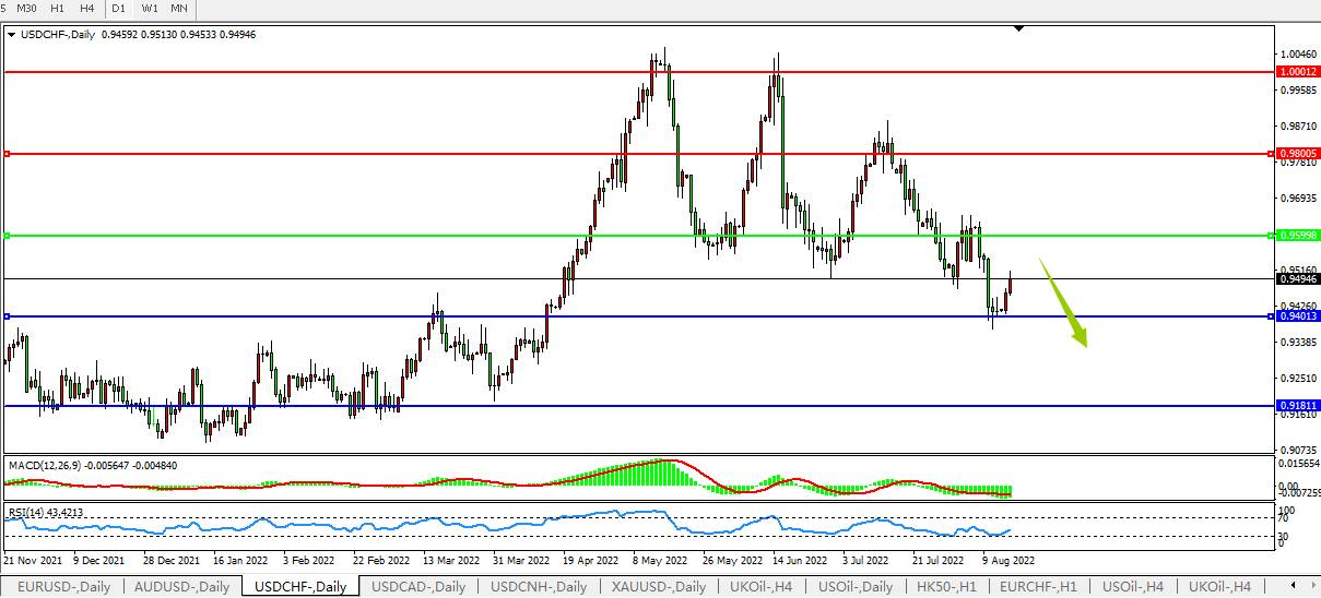 交易策略:0.9600下方看跌,目标0.9400、0.9200