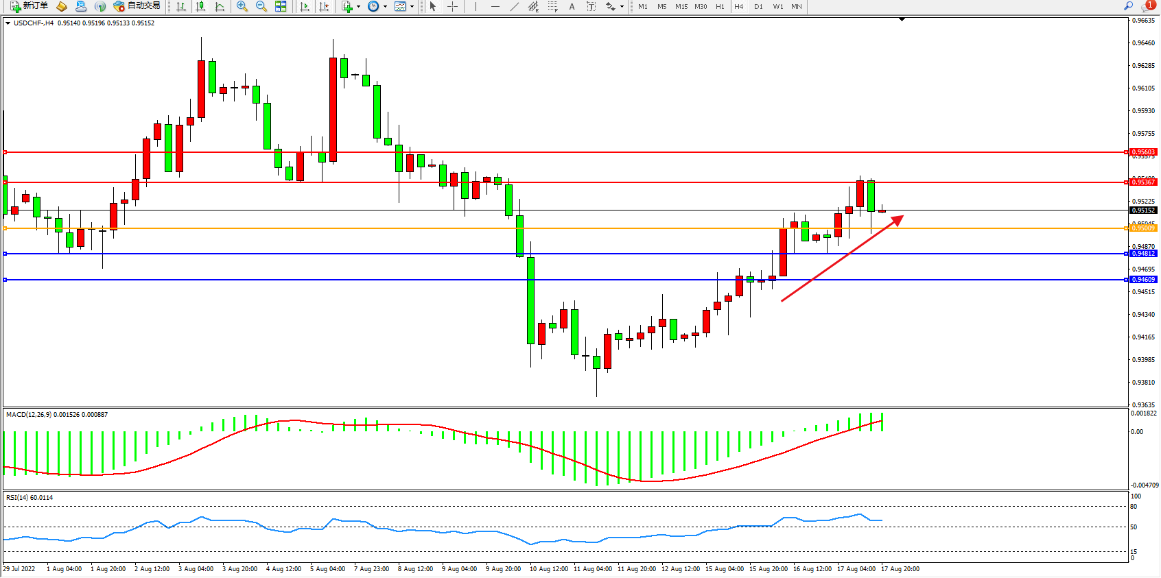 备选策略:0.95009下方看跌,目标0.94812、0.94609