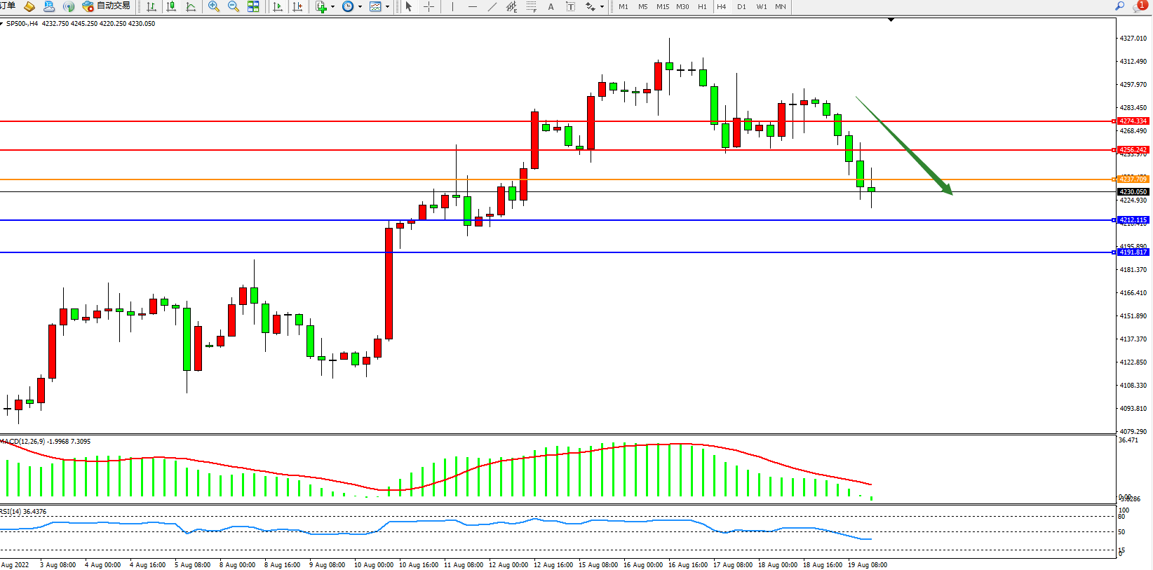 交易策略:4237下方看跌,目标4212、4191