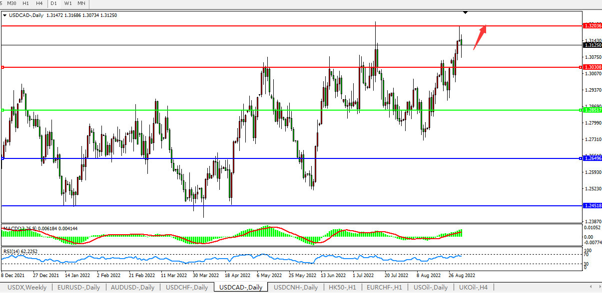 美元兑加元USDCAD  日线图: