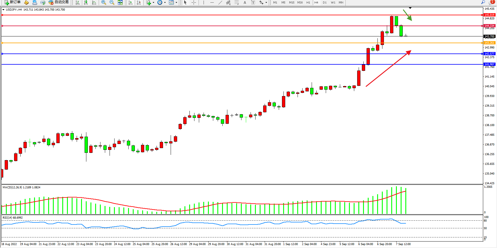 4小时图看:多头动力维持震荡上扬走势良好,短期持续向上拉升后震荡,市场看涨情绪笼罩,MACD指标处于多头区域高位整理,RSI指标处于多头区域维持徘徊;