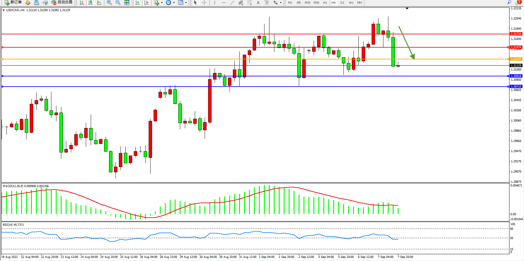 美元兑加元维持1.31129附近震荡,加拿大央行加息75个基点至3.25%,符合市场预期,利率水平为2008年3月以来最高。
