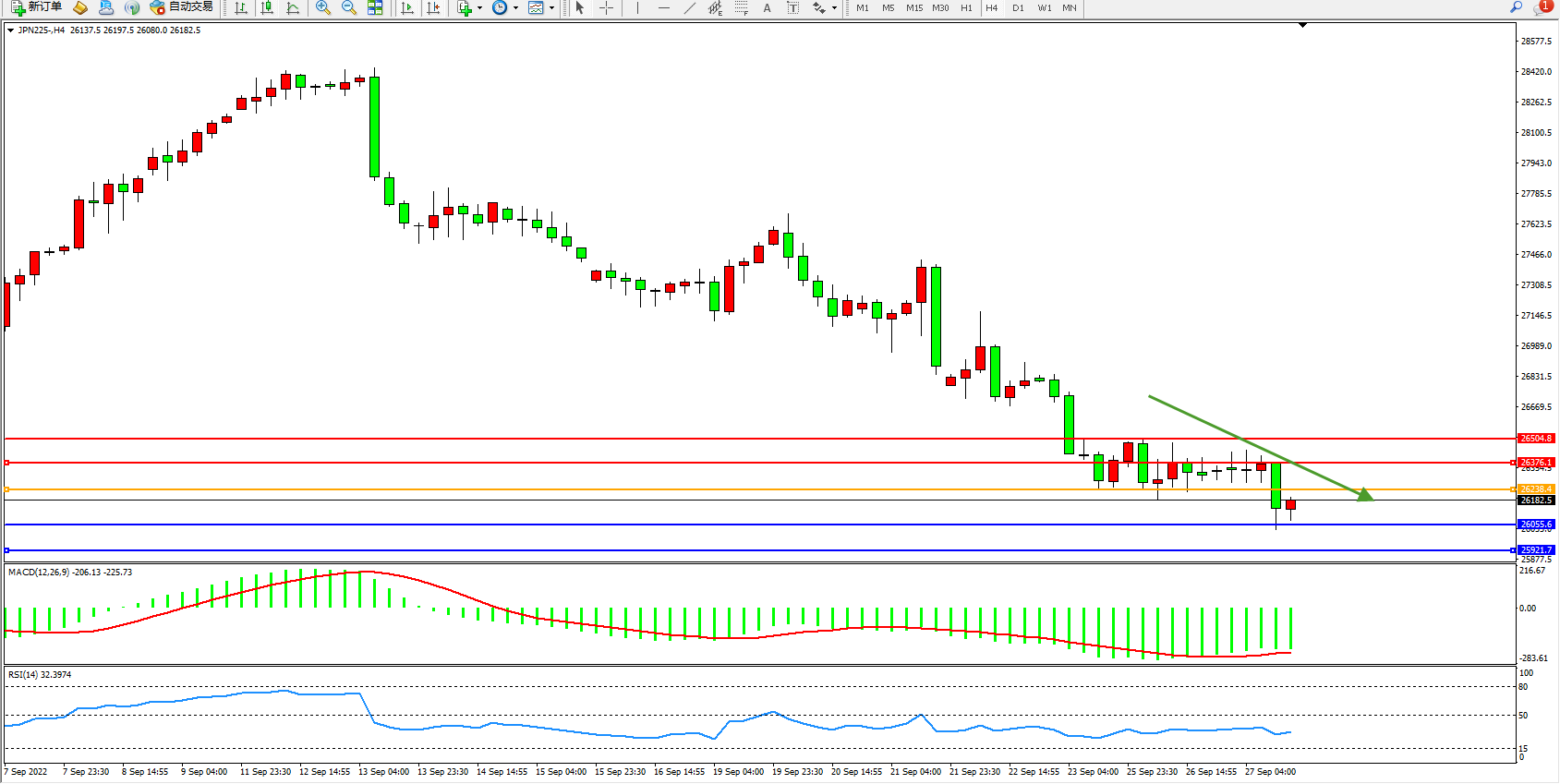 日经225指数9月27日(周二)收盘上涨152.95点,涨幅0.58%,报26584.50点。日本30年期国债收益率升至1.42%,创2015年9月以来新高;在长期国债收益率不断上升的压力下,日本央行宣布计划外的债券购买操作:购买1000亿日元10-25年期的日本国债和1500亿日元5-10年期的日本国债。