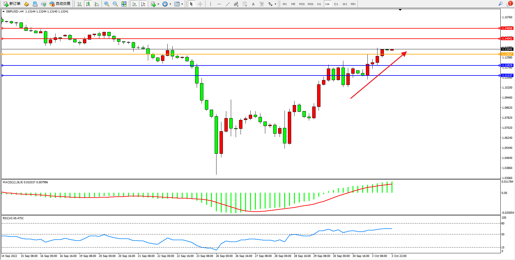 英镑兑美元维持1.13240附近震荡,英首相特拉斯坚持落实大规模减税计划,但外界对其期望依然不高,目前英镑仍窄幅震荡。投资者需关注新政府政策的效果,若有效果有望提振英镑。