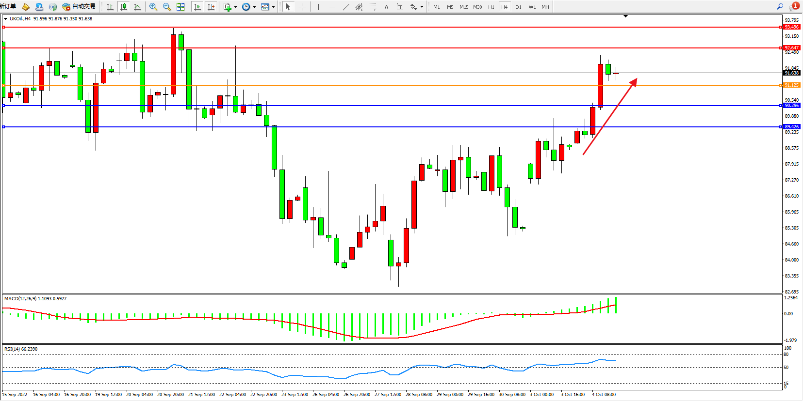 布油维持91.638附近震荡,市场预计石油输出国组织及其合作伙伴(OPEC+)将出台新的大幅减产措施,抵消了投资者对全球经济的担忧。