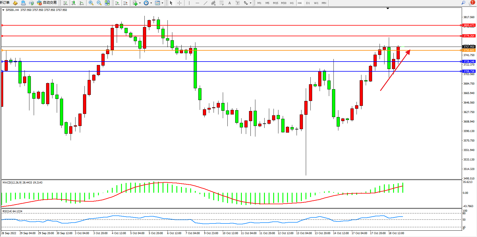 标普SP500——4小时K线图显示: