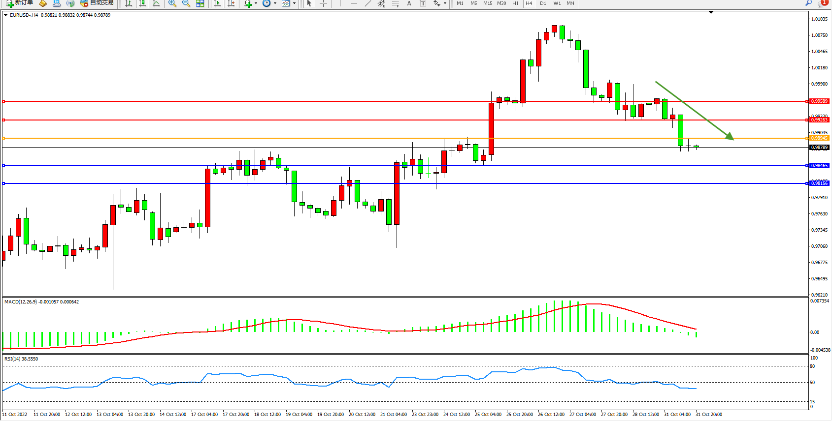 交易策略:0.98945下方看跌,目标0.98465、0.98156
