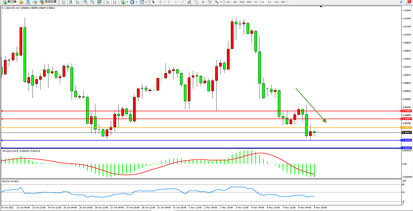 美元兑瑞郎维持0.98553附近震荡,通胀率远高于目标,美联储正在大举收紧政策;而且就美国国内政治和国际地缘政治局势而言,我们生活在一个异常不确定的世界,所以仍然认为美国经济在未来12个月进入衰退的可能性为35%。