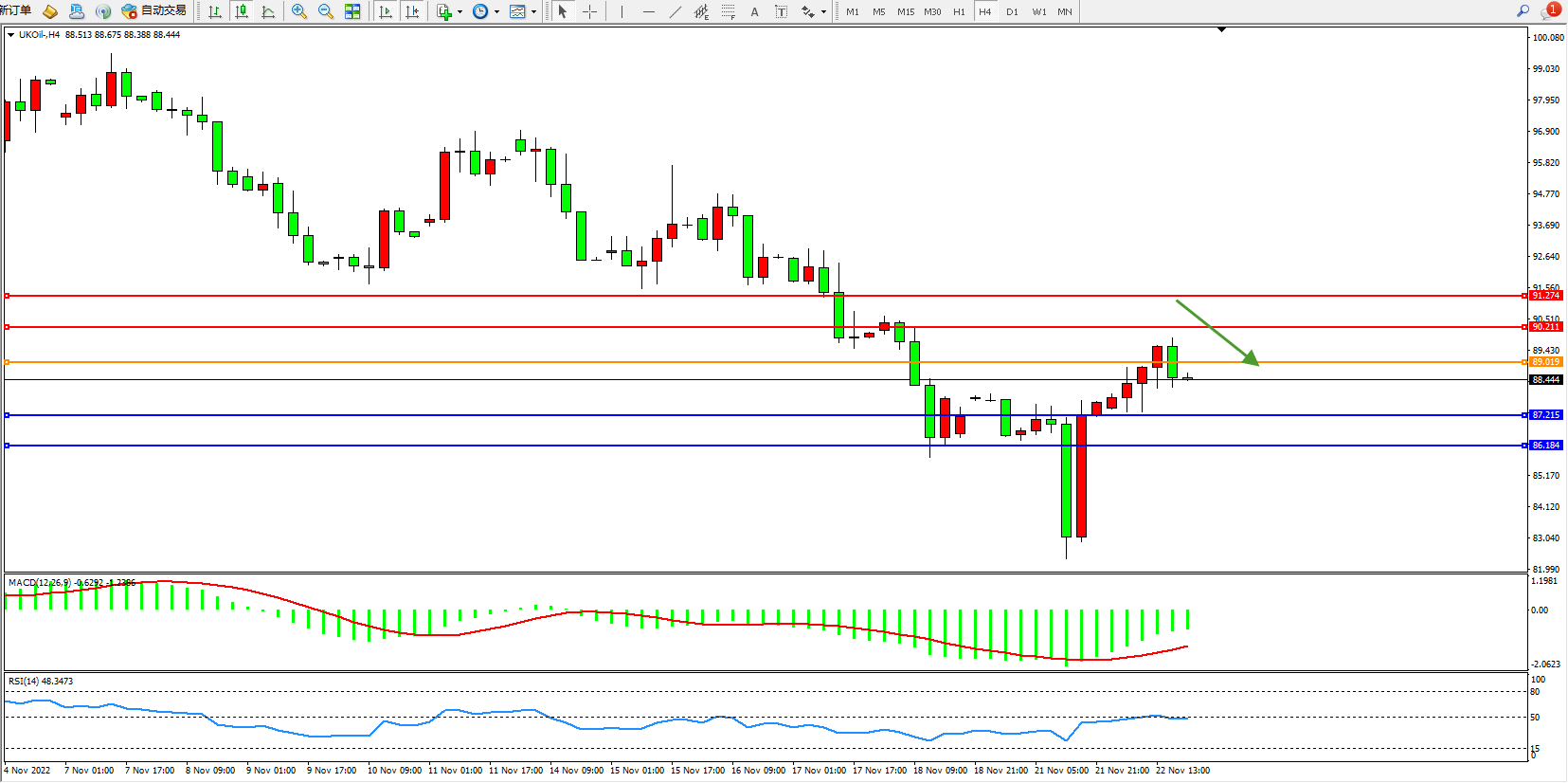 布油维持88.444附近震荡,隔夜纽约时段反弹走势,OPEC+对增产持谨慎态度,且美元回落抵消了全球经济衰退前景引发的需求担忧带来的利空。西方对俄石油制裁增加供应端变数。