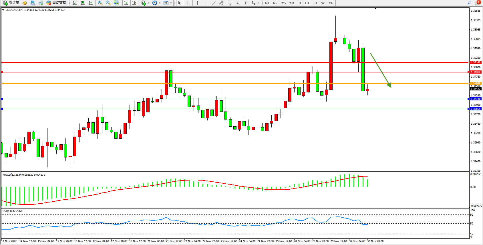 交易策略:1.34565下方看跌,目标1.34140、1.33865