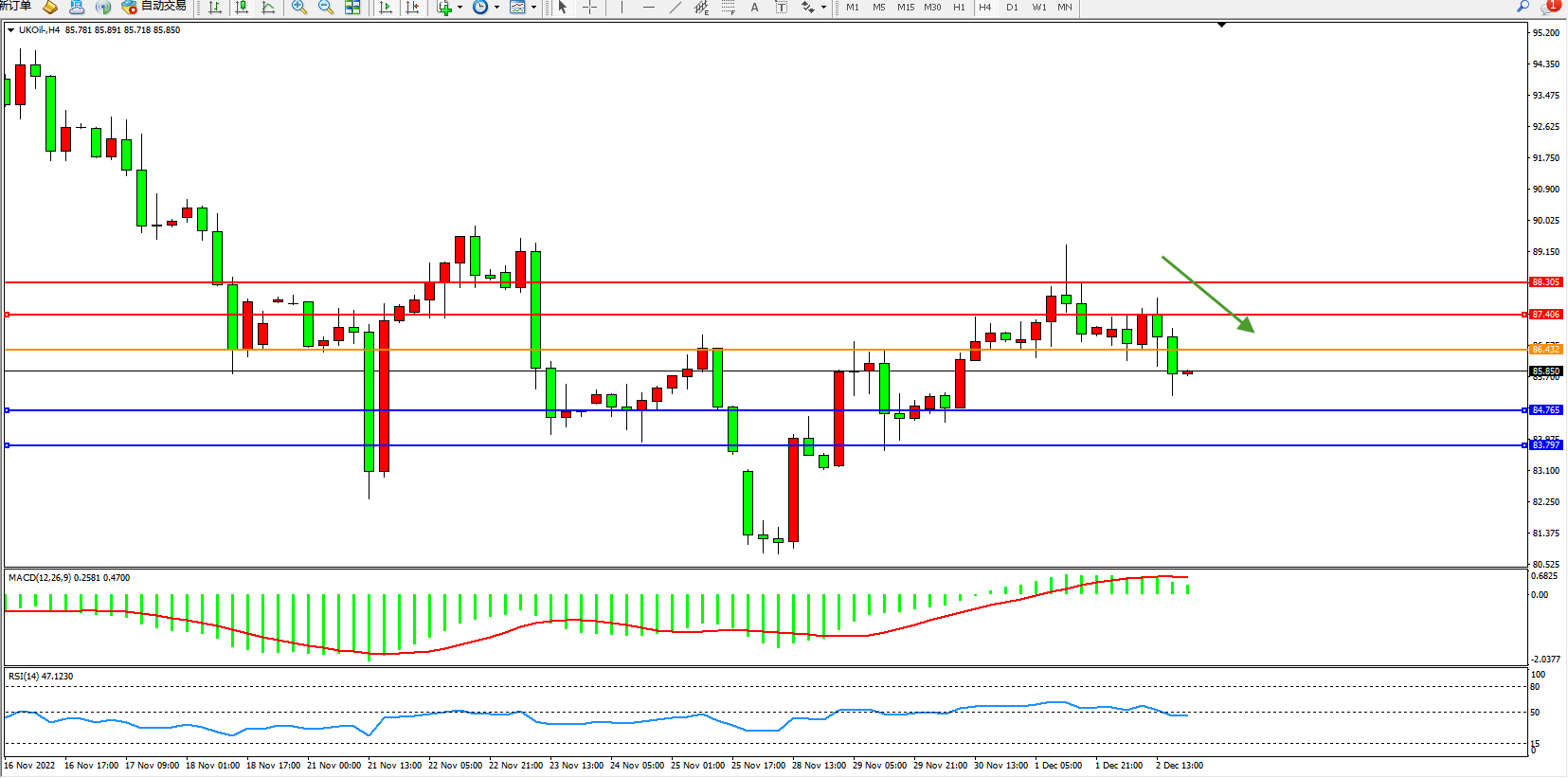 布油UKOil——4小时K线图显示: