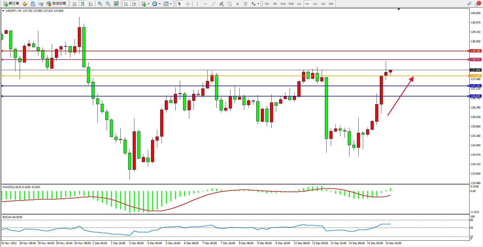 交易策略:137.608上方看涨,目标138.237、138.568